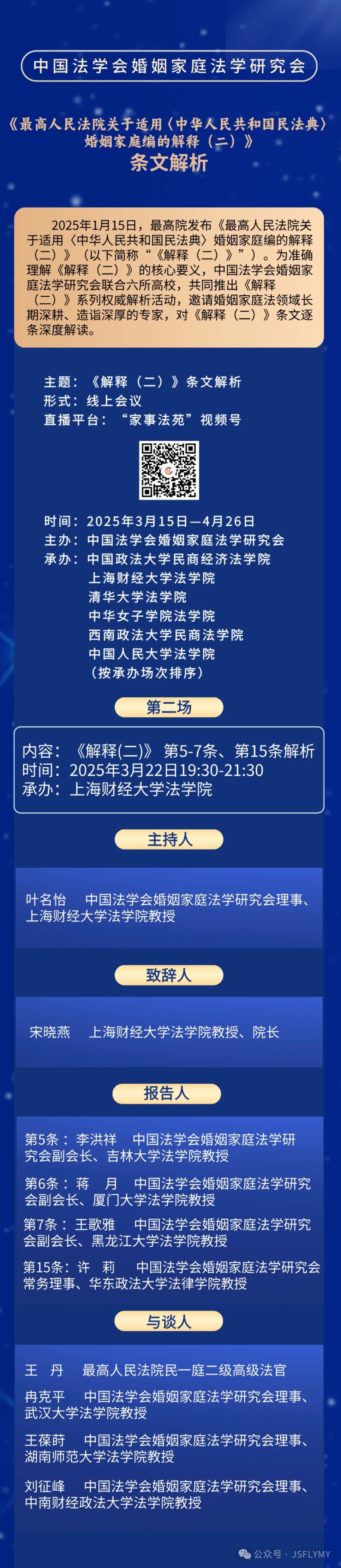 3月15日开讲 | 《民法典婚姻家庭编司法解释二》线上公益讲座
