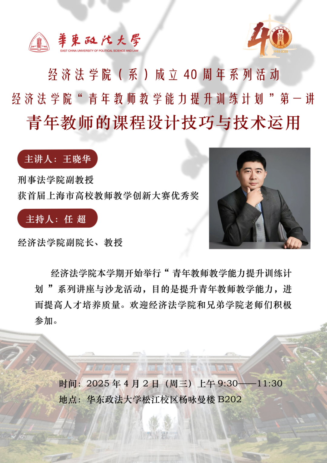 4月2日开讲 | 王晓华:青年教师的课程设计技巧与技术运用 发布 2025-03-31 14:19:00 浏览 99 点赞次数:0 详情链接:https://mp.weixin.qq.com/s/lILxMFwG0QvDxDSgcUH5Ww 觉得不错,就赞一下!