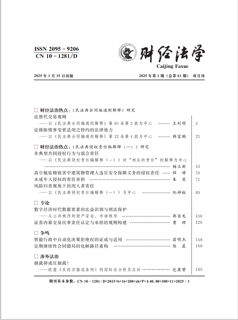 《财经法学》2025年第1期要目概览