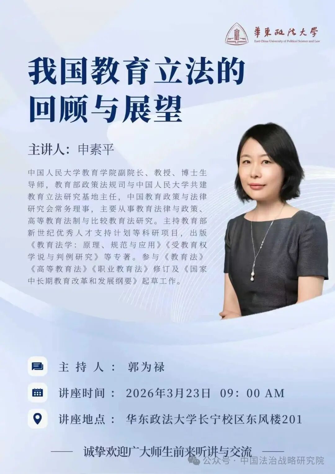 3月23日开讲 | 华政讲座:我国教育立法的回顾与展望