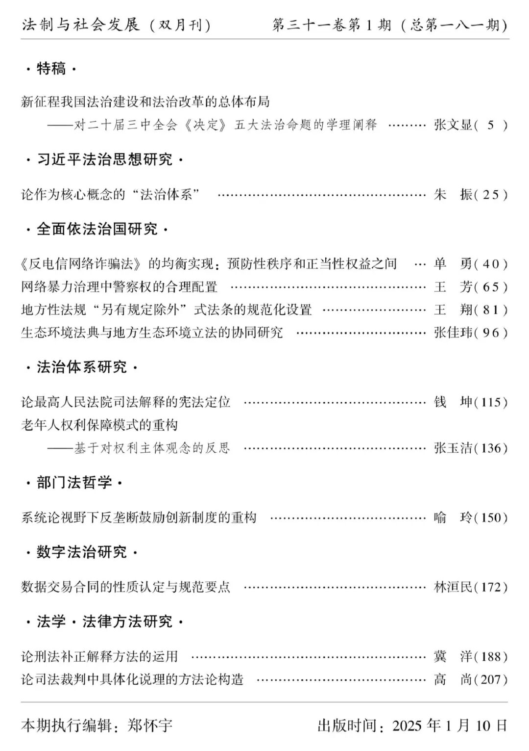 《法制与社会发展》2025年第1期目录摘要
